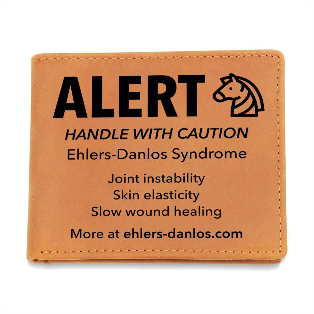 EDS Medical Alert Leather Wallet - Ehlers-Danlos Emergency Alert with Star of Life - Awareness for Hypermobility